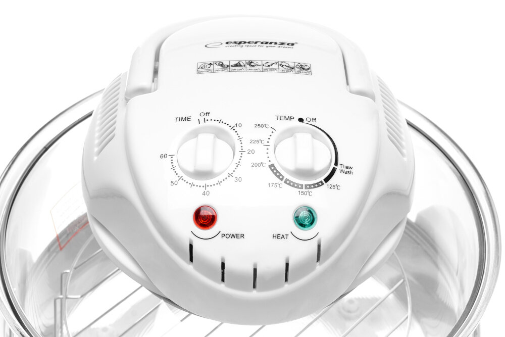 Прибор оснащен регулировкой температуры от 0 до 250 градусов. Это позволяет легко настроить подходящую мощность, в зависимости от блюд, которые вы готовите. Дополнительным преимуществом является таймер, который можно установить от 0 до 60 минут. Пароконвектомат имеет высокую мощность - 1400 Вт, поэтому он готов к работе в кратчайшие сроки. Приготовленные блюда всегда идеально прожариваются и поджариваются, поражают своей сочностью, великолепным ароматом и глубиной вкуса.