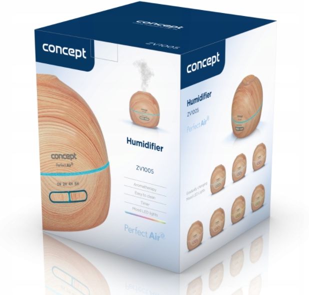 Зволожувач повітря Concept ZV1005 Perfect Air 2-в-1 з ароматизатором створює ідеальне середовище для здорового дихання у вашому домі. Він вирізняється сучасним дизайном зі світлого дерева та дуже тихою роботою.