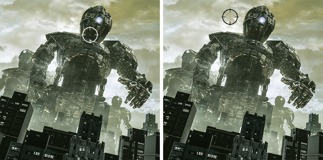 Точка прицілювання автоматично змінює колір, що робить її видимою в будь-який момент. Якщо колір точки прицілювання збігається з кольором фону, це може ускладнити прицілювання.