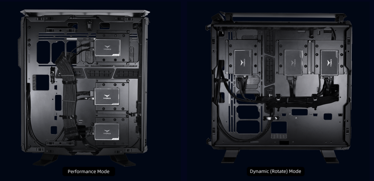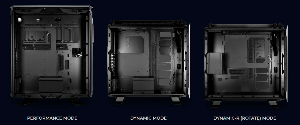 Dynamic і Dynamic-R - це базові конфігурації, за винятком того, що в останній лоток материнської плати обертається, щоб поліпшити потік повітря до відеокарти. Третій режим, Performance, повертає весь корпус на 90 градусів, щоб ще більше поліпшити потік повітря для кращого розсіювання тепла. Така гнучкість дає користувачам свободу конструювати ПК на власний смак.