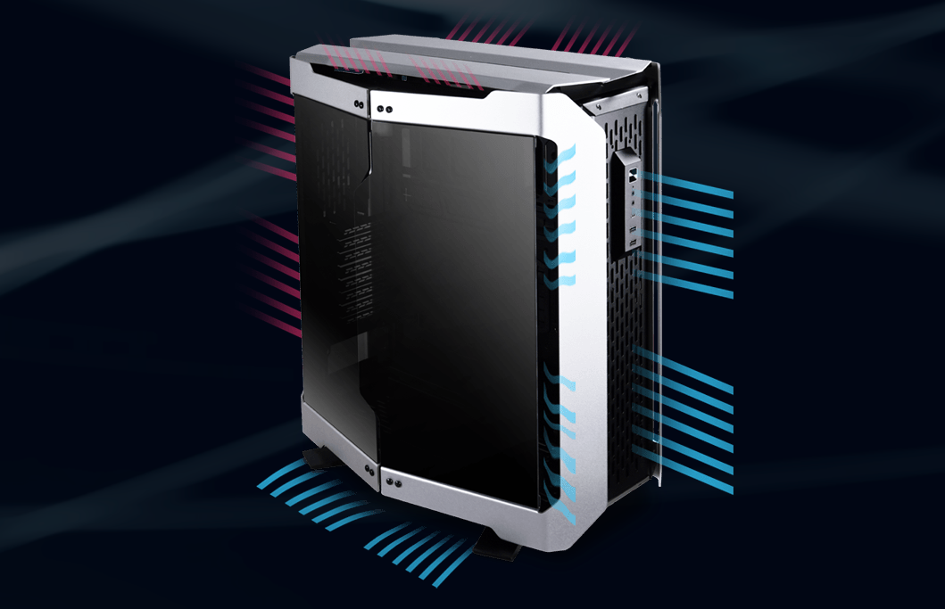 Вся концепція ODYSSEY X базується на відкритому повітряному потоці, завдяки чому система працює з максимальною ефективністю без теплового дроселювання. Елементи освітлення добре видно крізь панелі з тонованого загартованого скла товщиною 4 мм, а рясний потік повітря проходить крізь великі щілини у фальці скляної панелі.