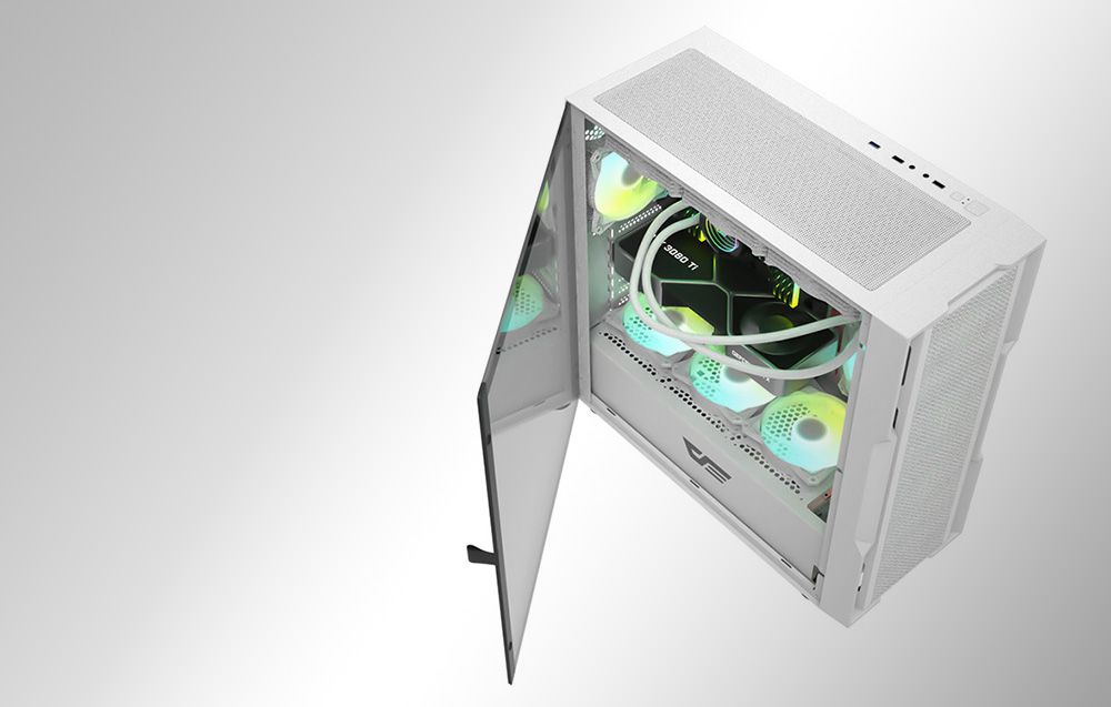 За допомогою комп'ютерного корпусу Darkflash DK431 ви зможете легко створити апаратну конфігурацію, на якій вам буде приємно грати або працювати. Виріб оснащений різноманітними портами, такими як USB 3.0 і 2.0, а для його виготовлення були використані високоякісні матеріали. Прозора бічна панель, що відкривається, не тільки полегшує заміну компонентів, але й дозволяє створювати цікаві візуальні ефекти, наприклад, у поєднанні з RGB-вентиляторами.