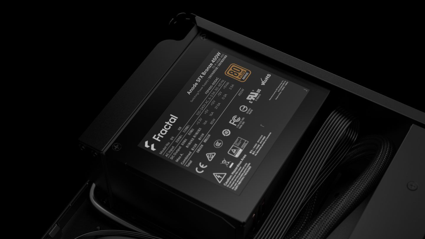 Блок живлення Anode SFX 450W, який опціонально постачається з корпусом, забезпечує стабільне живлення для найвимогливіших систем. Він оснащений спеціальними роз'ємами та відповідними кабелями, що ідеально підходять для використання з Node 202, сприяючи безперешкодному встановленню та прокладанню кабелів.