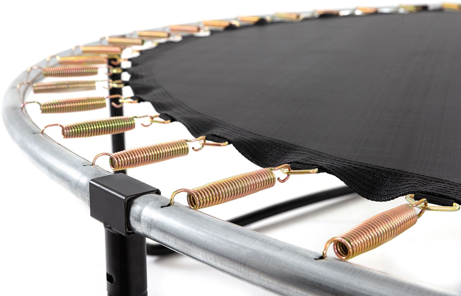 - Багатошарове покриття пружин: Пружини захищені неймовірно міцним матеріалом, викладеним товстою губкою, що забезпечує захист від погодних умов і захищає стрибунів для безпеки.