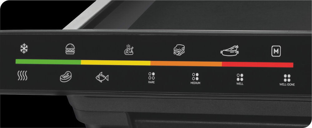 Хочете ніжно підсмажені овочі? Або, можливо, добре просмажений стейк? Кожна страва, яка готується на грилі, потребує різної температури. Тому регулюйте потужність приладу залежно від того, що ви готуєте на грилі. Ви можете вибрати одну з 6 програм приготування.