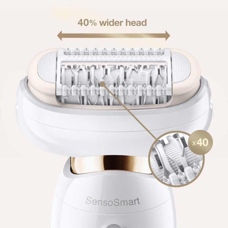 Депілюйте все тіло за допомогою фіксованої головки, яка легко досягає важкодоступних ділянок. Технологія Micro-Grip з на 40% ширшою головкою видаляє більше волосся за один рух, роблячи епіляцію більш ефективною.