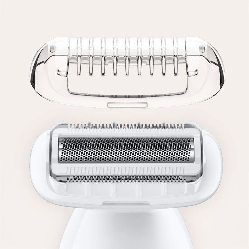 Бритвена головка перетворює епілятор на повноцінну бритву, а тримерна насадка дозволяє підстригати волосся відповідно до ваших уподобань.