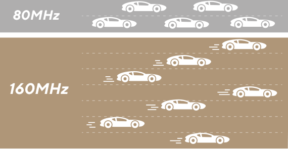 Mesh-система ASUS ZenWiFi XT9 Wi-Fi 6 підтримує передачу даних по каналу шириною 160 МГц, збільшуючи пропускну здатність і швидкість вашої бездротової мережі. Пропонуючи загальну пропускну здатність до 7800 Мбіт/с, система в 2,6 рази швидше, ніж тридіапазонні маршрутизатори AC3000 (Wi-Fi 5).