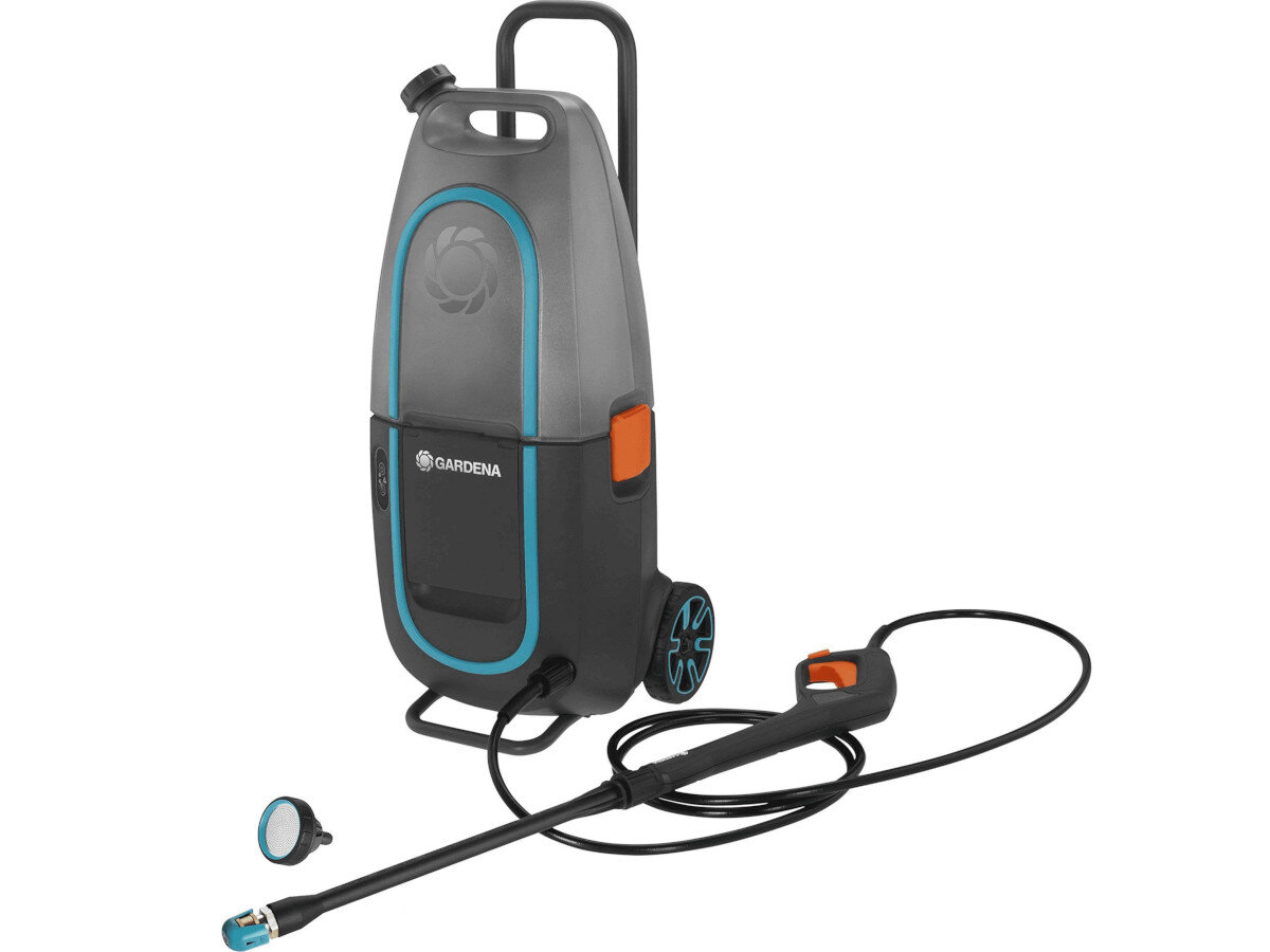 Мийка під тиском GARDENA AquaClean Li-40/60 важить всього близько 8,4 кг, має великі колеса і міцну ручку, завдяки чому її дуже легко і зручно транспортувати.