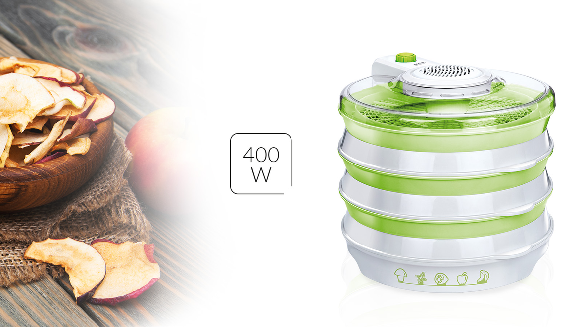 Сушарка для продуктів MSG-06 відмінна ідея для збереження цінних поживних речовин, що містяться в овочах, фруктах і травах. Завдяки ретельному висушуванню продуктів, вони можуть зберігатися місяцями. Вони також мають виняткові смакові та ароматичні якості.