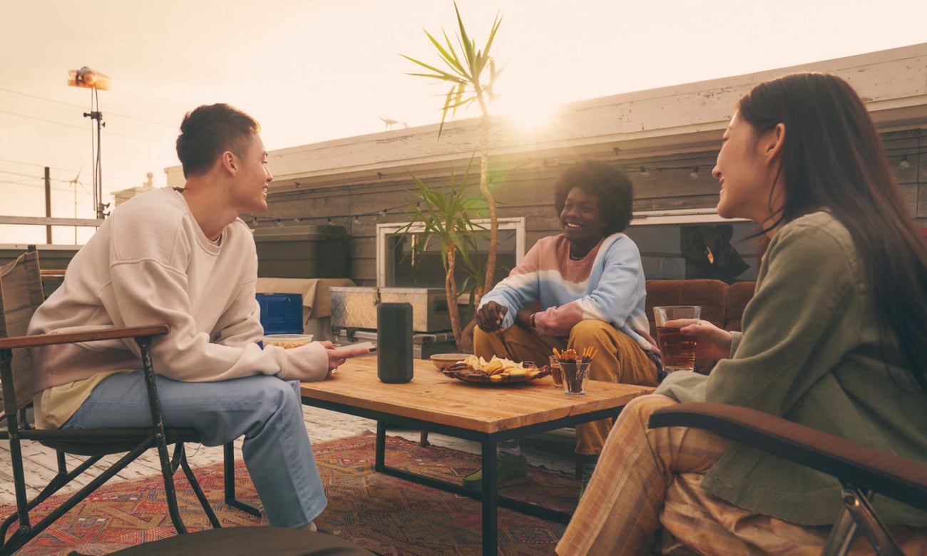 Завдяки функції придушення відлуння динамік Sony SRS-XE300 покращує якість телефонних дзвінків і зустрічей. Завдяки їй двоє людей можуть розмовляти одночасно без жодних звукових переривань. Крім того, за необхідності звук можна вимкнути за допомогою кнопки MIC Mute на гучномовці. Крім того, завдяки режиму багатоточкового з'єднання ви можете одночасно підключити до динаміка два пристрої.