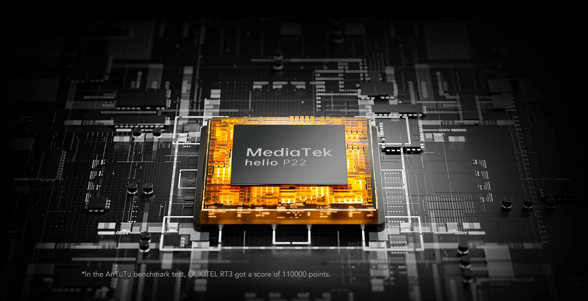 RT3 оснащений потужним восьмиядерним процесором Cortex-A53 з тактовою частотою до 2,0 ГГц і графікою MediaTekHelio P22 (MT 6762), що забезпечує високу продуктивність і високу швидкість для безперебійної роботи в багатозадачному режимі.