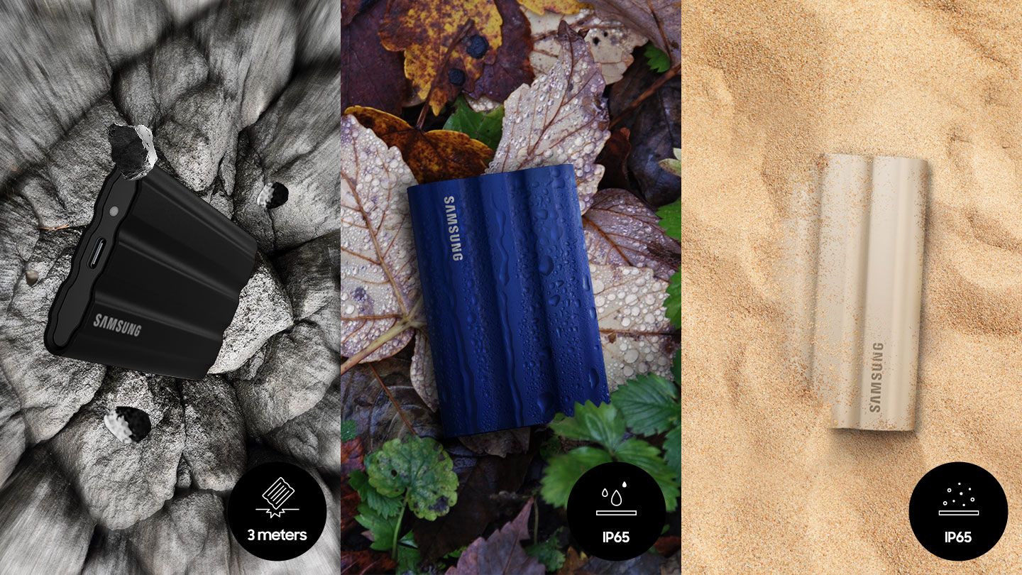 Швидкий, міцний, зручний. Це новий портативний накопичувач T7 Shield, який відмінно зарекомендує себе в дорозі, навіть у складних погодних умовах. Швидкість і довговічність - це практичні характеристики виробу. Насолоджуйтесь безпечним ходом своєї роботи, незалежно від того, чи виконуєте ви її вдома, чи передаєте готовий проект клієнту.