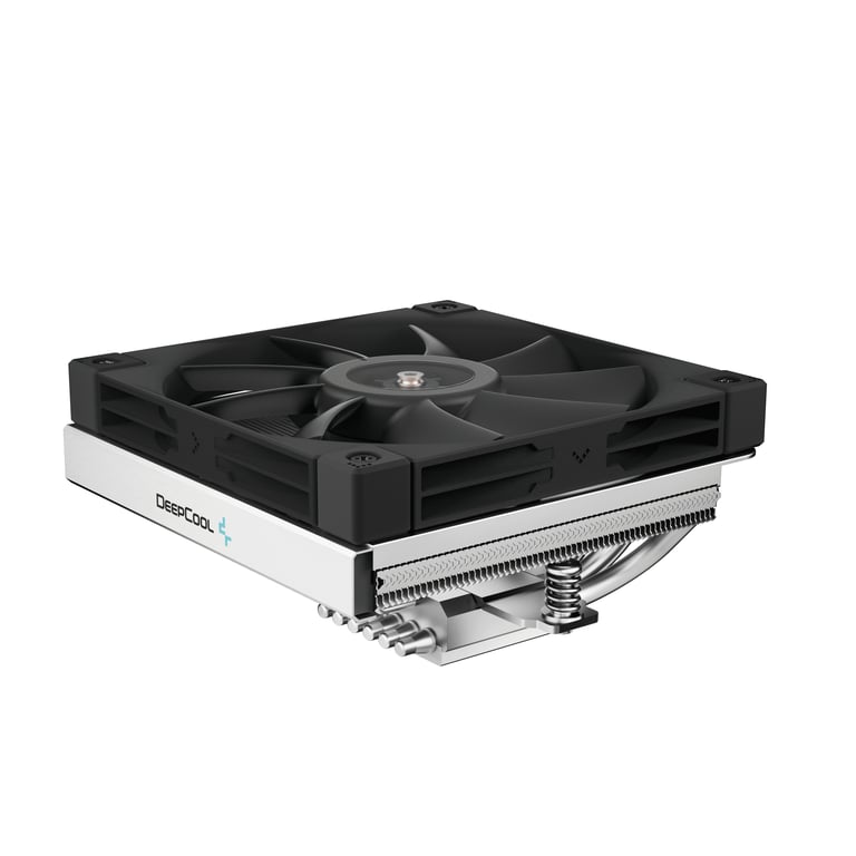 DeepCool AN600. Модель: повітряний кулер, Діаметр купола вентилятора: 12 см, Максимальний повітряний потік: 61.56 фут³/хв, Максимальний тиск повітря: 1.97 mmH2O. Ширина виробу: 122 мм, глибина виробу: 120 мм, висота виробу: 67 мм. Колір виробу: алюміній, чорний