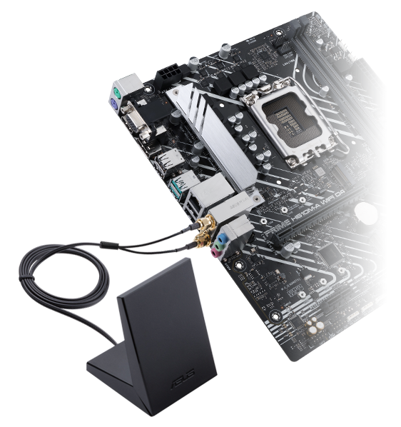 PRIME H610M-A WIFI D4 має Wi-Fi 802.11ac з антенами 1x1 2,4/5 ГГц для швидкості передачі даних до 433,3 Мбіт/с, щоб кожен підключений користувач отримував найкращу швидкість бездротового зв'язку та роботи в Інтернеті!