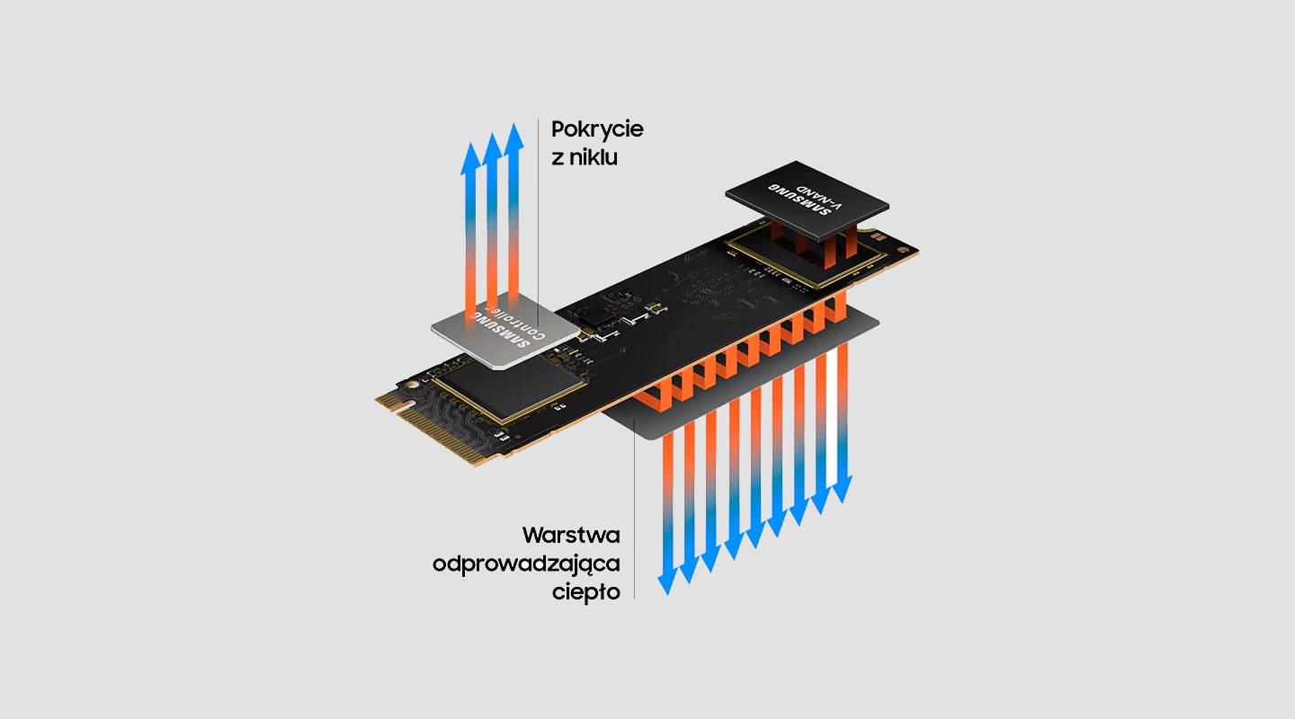 Високопродуктивні твердотільні накопичувачі, як правило, потребують високоефективного термоконтролю. Для забезпечення стабільної продуктивності в 980-му використовується нікелеве покриття, яке допомагає контролювати рівень нагрівання контролера, а також шар розсіювання тепла, який, у свою чергу, забезпечує термоконтроль чіпа NAND.