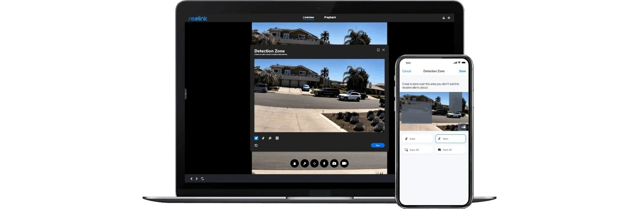 Через додаток для смартфона ви можете миттєво отримати доступ до камери Reolink Trackmix POE з будь-якого місця. Будь-яке виявлення підозрілого об'єкта надішле вам пуш-повідомлення на телефон. Визначайте зони, в яких рух повинен бути виявлений, а в яких ні. Переглядайте свої файли та зручно знаходьте записи за день. Або просто перевіряйте, що відбувається у вашому домі в режимі реального часу.