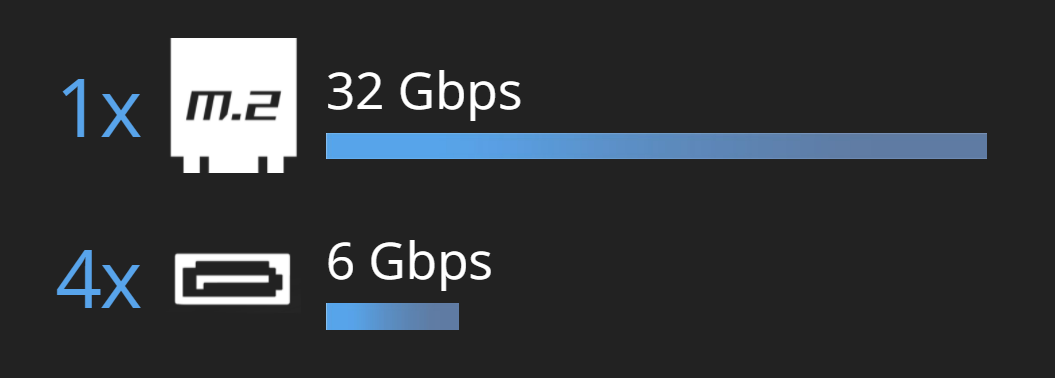 | Роз'єми накопичувачі | M.2 слот x1, SATA 3 x4 |