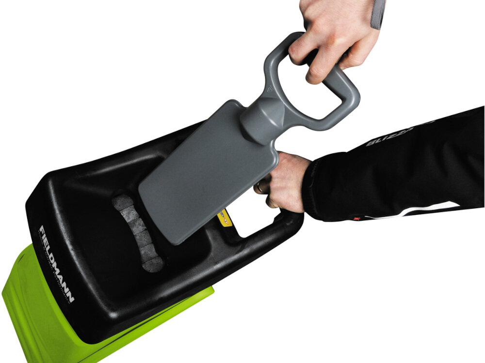 Подрібнювач гілок FIELDMANN FZD 4020-E має практичне рішення у вигляді штовхача гілок, який захищає руки користувача від випадкового наближення до ріжучого елемента. Варто також відзначити, що машина, як для свого призначення, надзвичайно компактна. Всі основні компоненти машини містяться в одному компактному корпусі. З цієї причини монтаж цього обладнання обмежується встановленням декількох захисних кожухів і затягуванням декількох гвинтів.