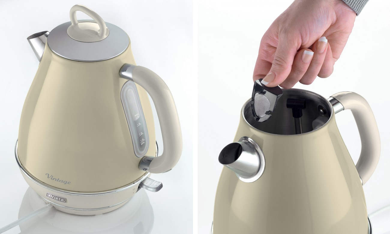Електрочайник Ariete Vintage 2869/03 оснащений фільтром для видалення накипу з приладу, який легко знімається та очищується. Чайник має поворотну на 360° підставку для комфортного використання. Фігурний носик дозволяє зручно наливати воду прямо з чайника.