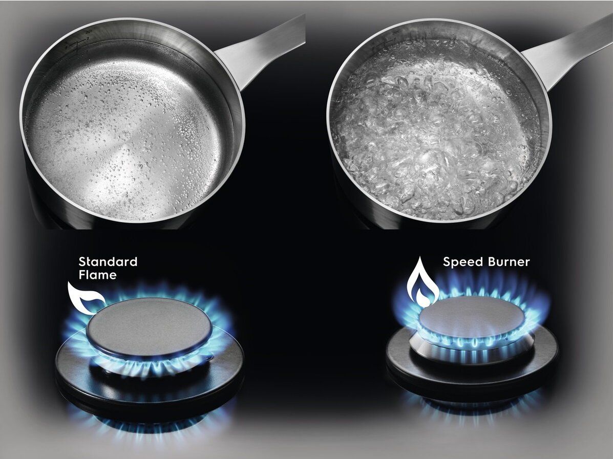 Вбудована варильна поверхня з конфоркою Speed, подовженими емальованими решітками та точним контролем з нержавіючої сталі. Конфорка Speed призначена для швидкого нагрівання дна посуду. Сильніше та швидше полум'я економить до 20% електроенергії. Подовжені решітки над конфорками цього приладу забезпечують кращу стійкість встановленого посуду, незалежно від його розміру.
