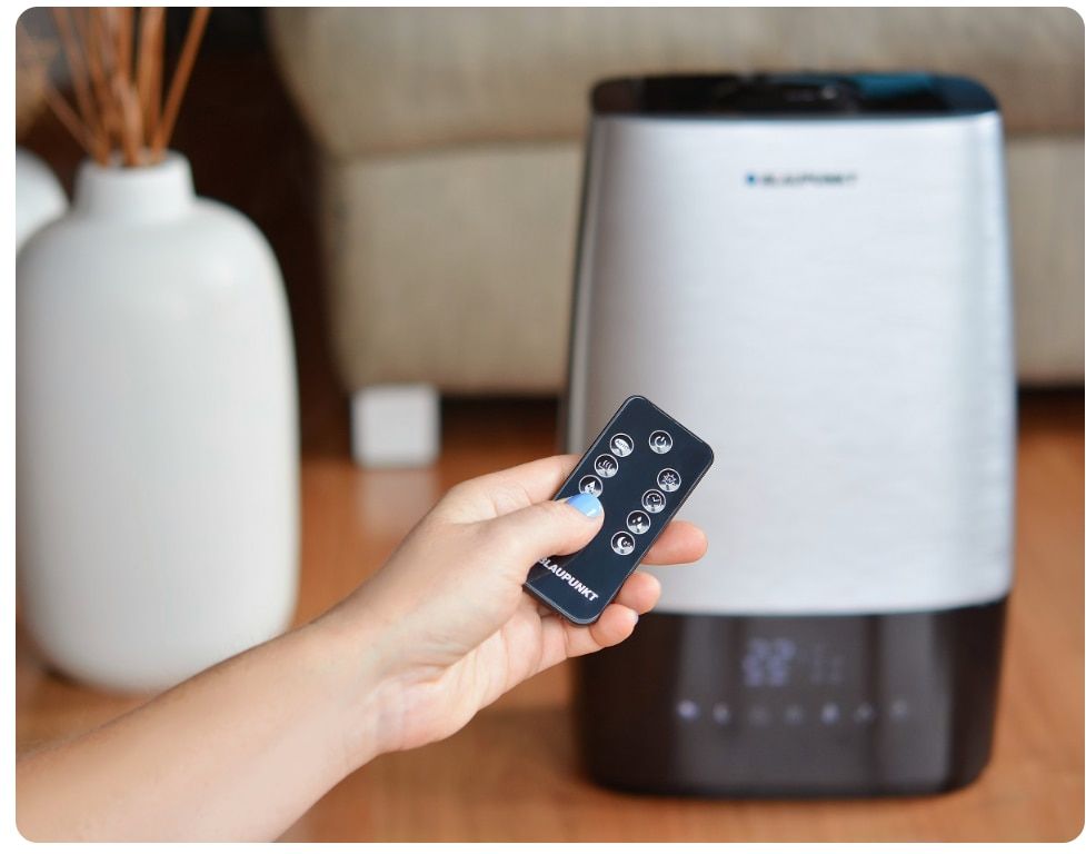 Вбудований LED дисплей надає інформацію про поточну температуру і вологість в приміщенні. Завдяки сенсорній панелі ви можете легко і без особливих зусиль запрограмувати пристрій. Пульт дистанційного керування дозволяє керувати приладом без необхідності підходити до зволожувача. 5-літровий резервуар для води гарантує тривалий час роботи після однієї заправки.