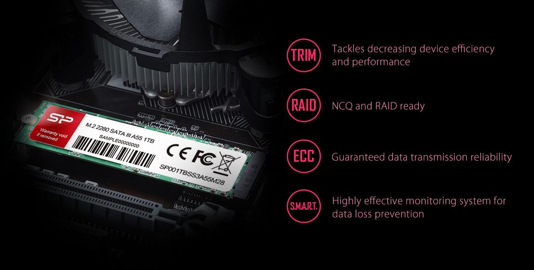 Твердотільний накопичувач A55 поєднує в собі переваги передових твердотільних технологій з компактними розмірами стандарту M.2 2280. Відсутність корпусу дозволяє встановлювати накопичувач в новітні ноутбуки і настільні комп'ютери.