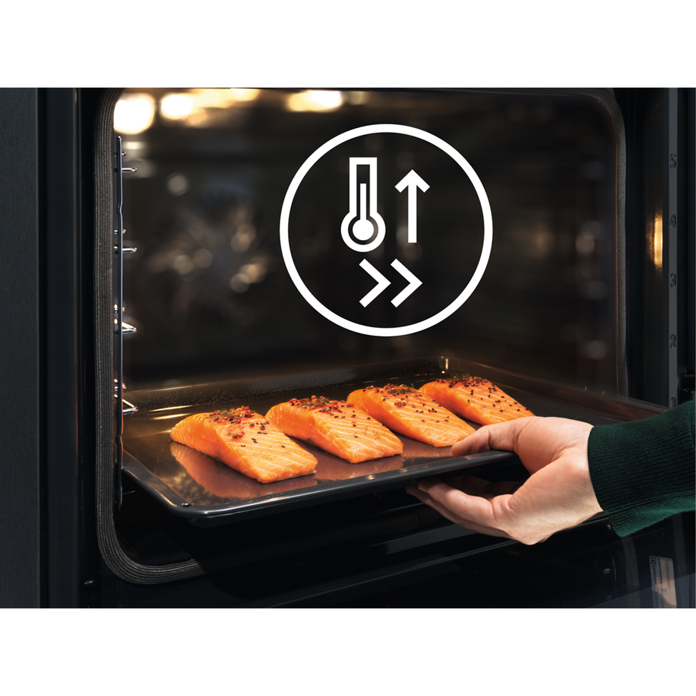 Режим швидкого розігріву духової шафи скорочує час приготування до необхідної температури на 40%. Скорочена фаза розігріву порівняно з традиційними приладами дозволить вам перетворити неквапливі моменти на незабутні страви.