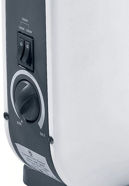 Конвектор оснащений терморегулятором, завдяки якому при увімкненій функції обігріву пристрій буде по черзі вмикатися і вимикатися для підтримки заданої температури. Це також дозволяє економити на споживанні електроенергії.