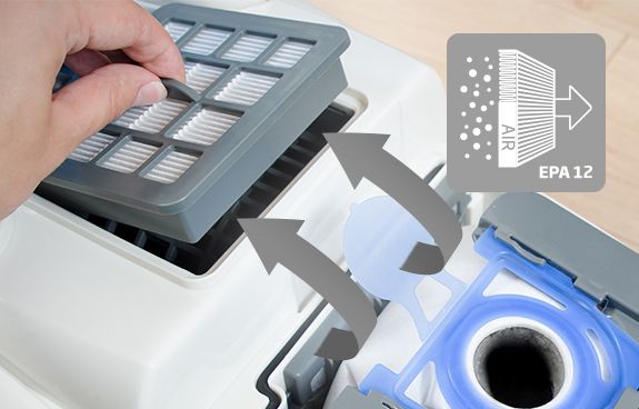 У вас алергія або маленькі діти? Прибирання пилососом нарешті стане вільним від пилових кліщів і хмар пилку в повітрі! Спеціальний фільтр всередині пилососа очищає повітря, яке видувається з нього - навіть з самого двигуна. Ідеально підходить для тих, хто хоче мати дійсно чистий будинок! Чистий дім, чисте повітря!