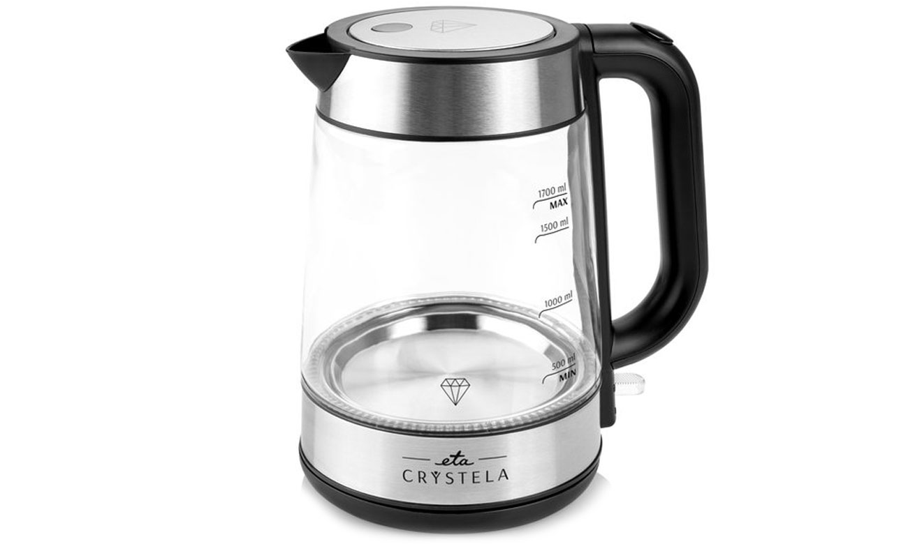 Чайник Eta Crystela має систему автоматичного вимкнення при закипанні. З ємністю 1,7 літра ви зможете закип'ятити воду для кількох склянок або чашок чаю чи кави. Крім того, система безпеки активує блокування в разі перегріву чайника або якщо чайник запускається без води.