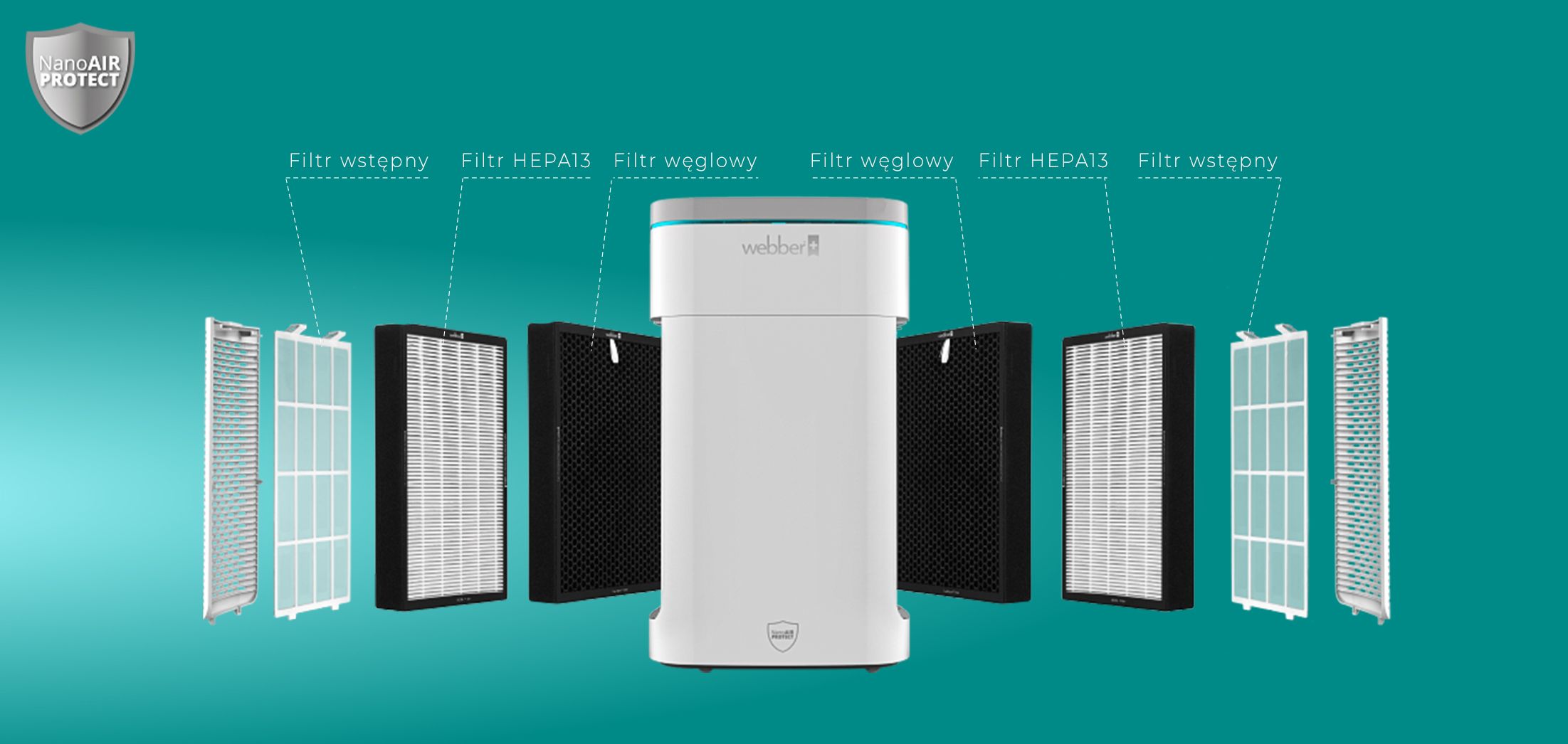 Очищувачем повітря Webber AP 9800 WiFi можна керувати за допомогою сенсорної панелі керування, пульта дистанційного керування та смартфона через мобільний додаток. Інтуїтивно зрозуміла панель управління оснащена дисплеєм, на якому ми можемо прочитати рівень забруднення повітря. Про якість повітря додатково інформує підсвічена смужка, що вказує на його якість за 4-бальною шкалою. Крім того, панель управління дозволяє, серед іншого, вибрати режим роботи, встановити рівень швидкості вентилятора, встановити таймер (1,2,4,8,12 годин), активувати батьківське блокування або отримати інформацію про необхідність заміни фільтра. Апарат має автоматичний режим, який підлаштовує робочі параметри очищувача до рівня забруднення, і нічний режим, в якому пристрій працює на дуже низькій швидкості для забезпечення тиші.