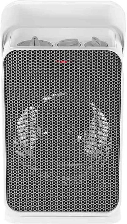 Завдяки сучасному дизайну із закритою панеллю керування, біло-сірий тепловентилятор гармонійно впишеться в будь-який офіс, вітальню або ванну кімнату. З метою безпеки передбачено захист від перегріву та перекидання. Пристрій автоматично вимикається, якщо його перекинути.