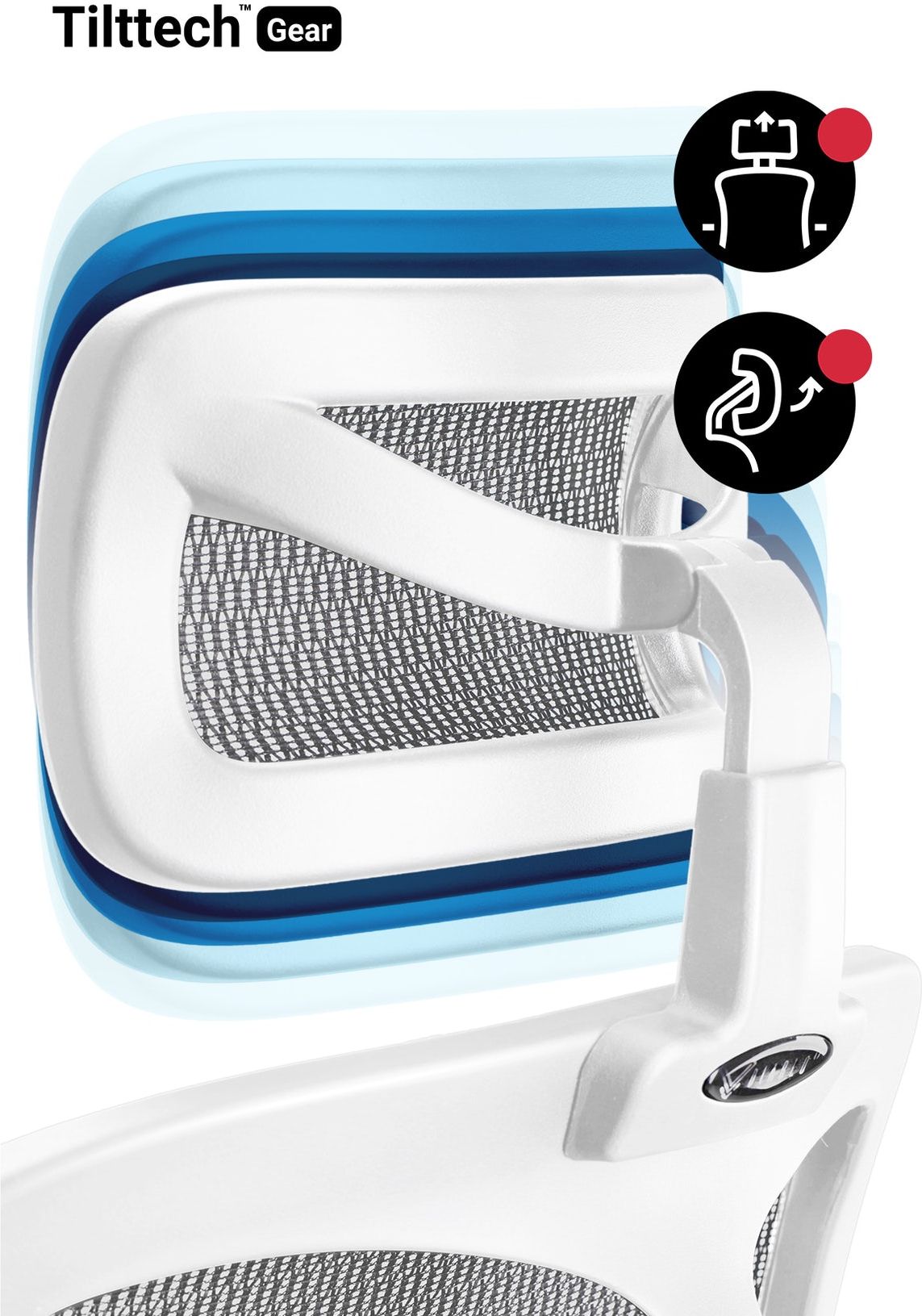 - Підголівник забезпечує необхідну підтримку шиї і стабілізує шийний відділ хребта, гарантуючи при цьому більший комфорт і ергономічність роботи за столом. Завдяки механізму Tilttech Gear положення підголівника можна точно відрегулювати;