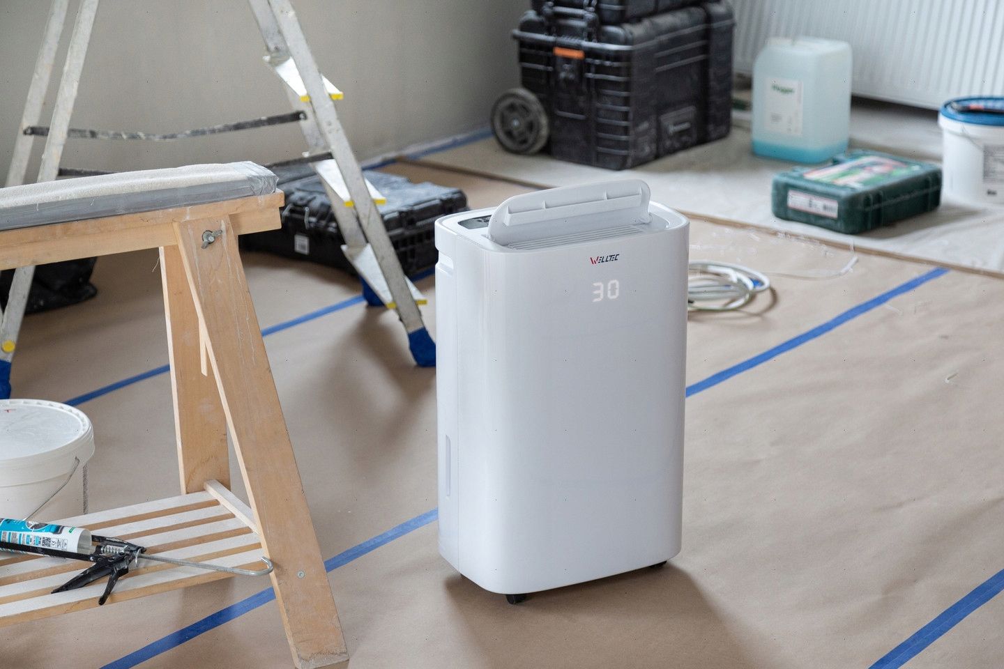 DHN20 є представником сімейства осушувачів Welltec, який характеризується потужним вентилятором, розміщеним у невеликому компактному корпусі з простим і стильним дизайном. Легко читабельний дисплей на передній панелі надає інформацію про поточну вологість або температуру. Вентилятор DHN20 генерує потік повітря 300 м³/год, що в поєднанні з високопродуктивним компресором забезпечує продуктивність осушення до 20 літрів за 24 години. Така висока продуктивність дозволяє використовувати осушувач у приміщеннях площею до 40 м². Завдяки потрійній фільтрації повітря за допомогою попереднього фільтра, фільтра HEPA H13 і фільтра з активованим вугіллям, Welltec DHN20 не тільки ефективно осушує повітря, але й очищає його. Фільтр HEPA H13 затримує до 99,95% забруднювачів повітря розміром до 0,3 мкм. Фільтр з активованим вугіллям вловлює небажані запахи, леткі органічні сполуки, формальдегіди, віруси та алергени. Чисте та осушене повітря розподіляється по приміщенню за допомогою функції SWING. Доступні режими роботи дозволяють використовувати DHN20 в різних ситуаціях - від щоденного сушіння білизни до тривалого, безперервного видалення вологи із затоплених приміщень. У кожному випадку дуже корисним є вбудований насос для відведення конденсату. Він дозволяє безперервно відводити воду в зовнішній резервуар або дренаж. Після цього пристрій може працювати повністю без нагляду. Коли немає можливості використовувати насос, пристрій зливає конденсат у вбудований 6-літровий бак. Як тільки він заповниться, пристрій автоматично вимкнеться.