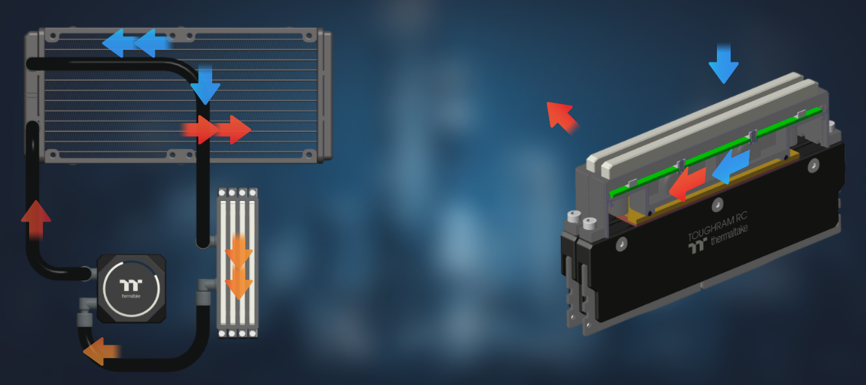 Оптимізована для охолодження процесора та оперативної пам'яті, потік проходить через водяний блок процесора, кулер, а потім через водяний блок пам'яті для досягнення максимальної ефективності охолодження та розсіювання тепла.