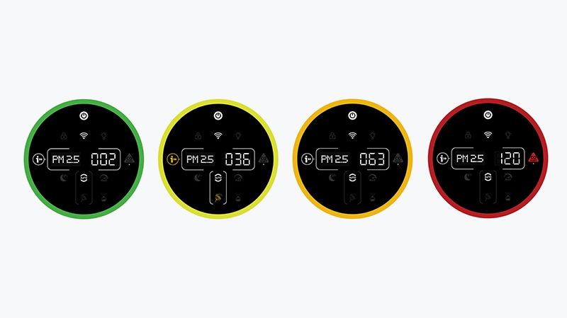 Ви можете будь-коли перевірити поточну якість повітря в приміщенні на кольоровому дисплеї. Різні кольори світлодіодного кільця відображають якість повітря в режимі реального часу.