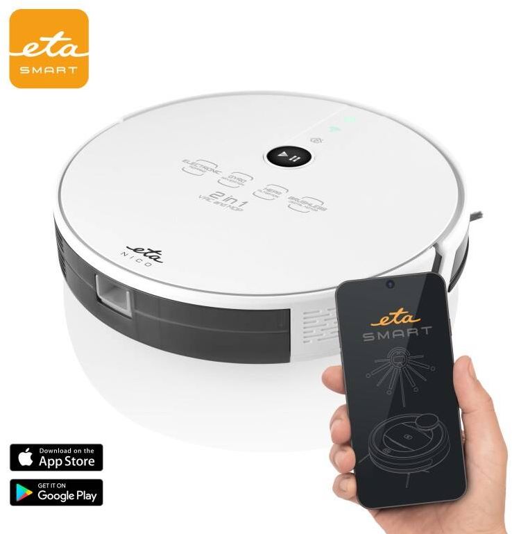 Роботом-пилососом ETA Nico можна керувати за допомогою пульта дистанційного керування, але весь його потенціал можна розкрити за допомогою додатку ETA SMART.
