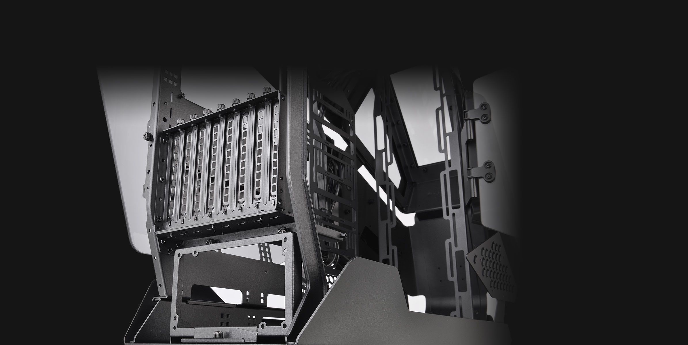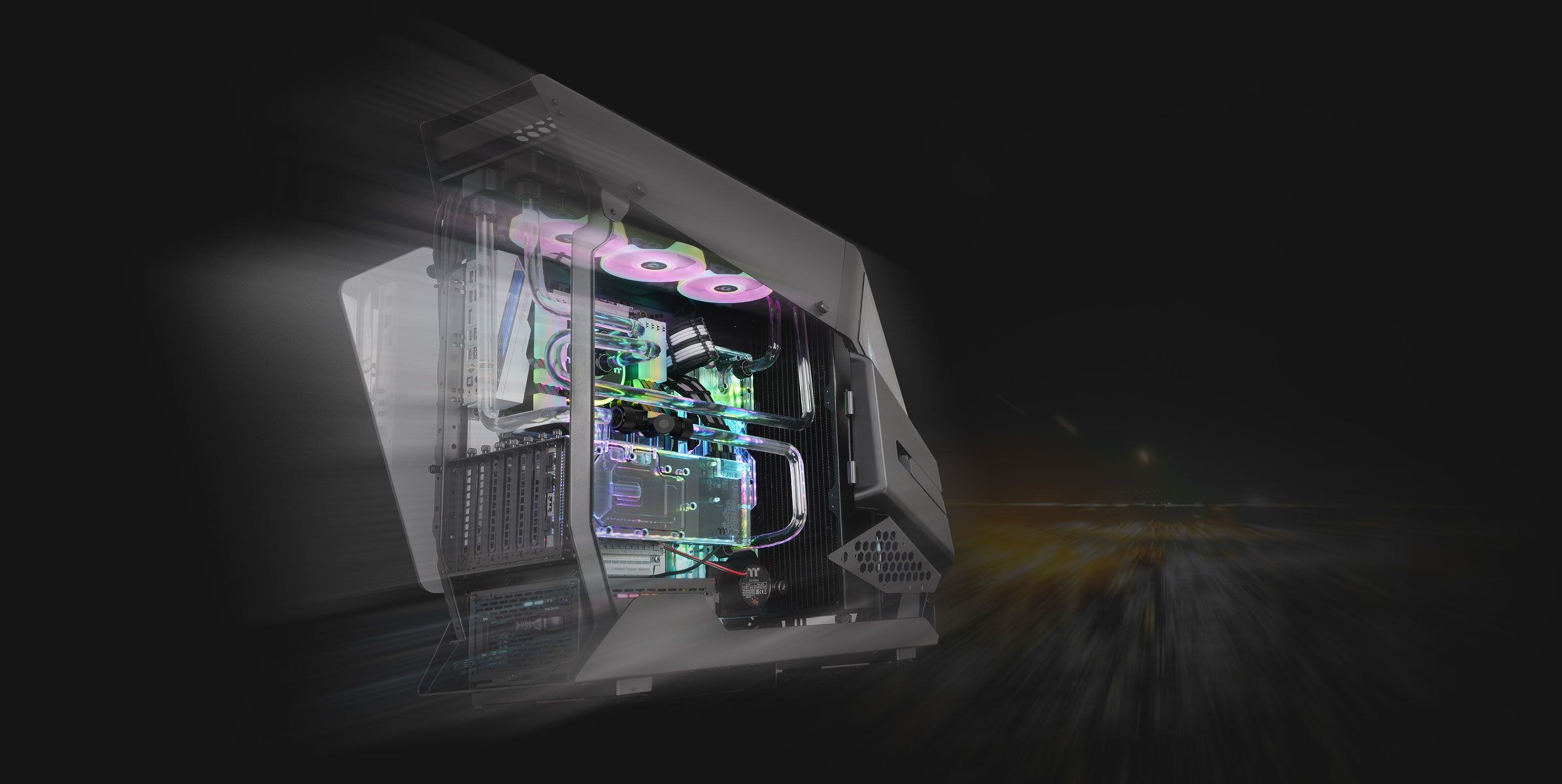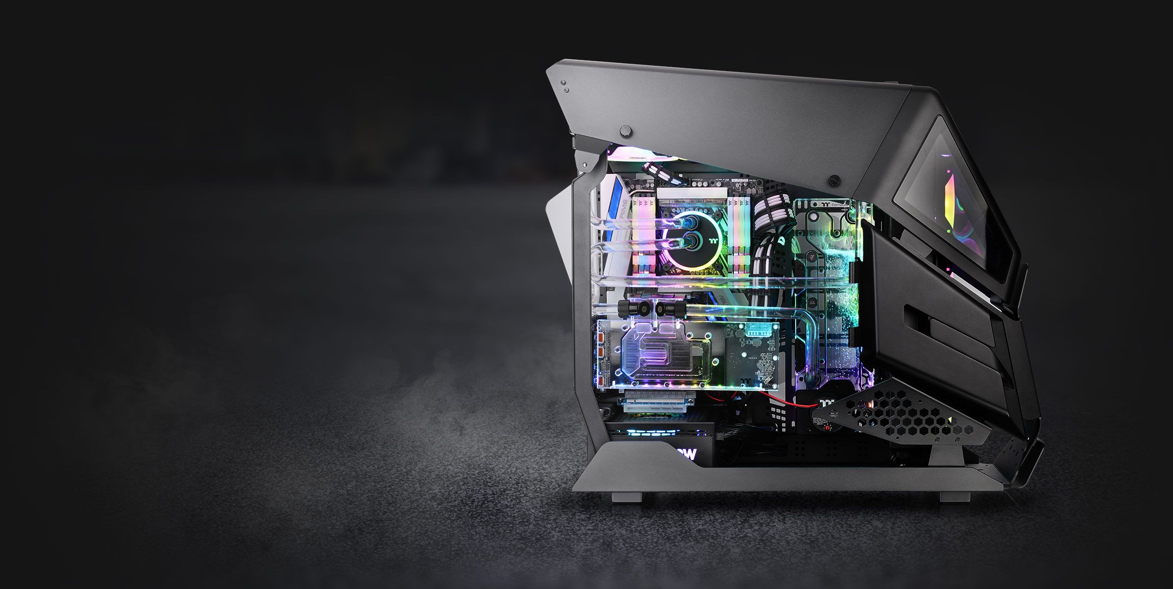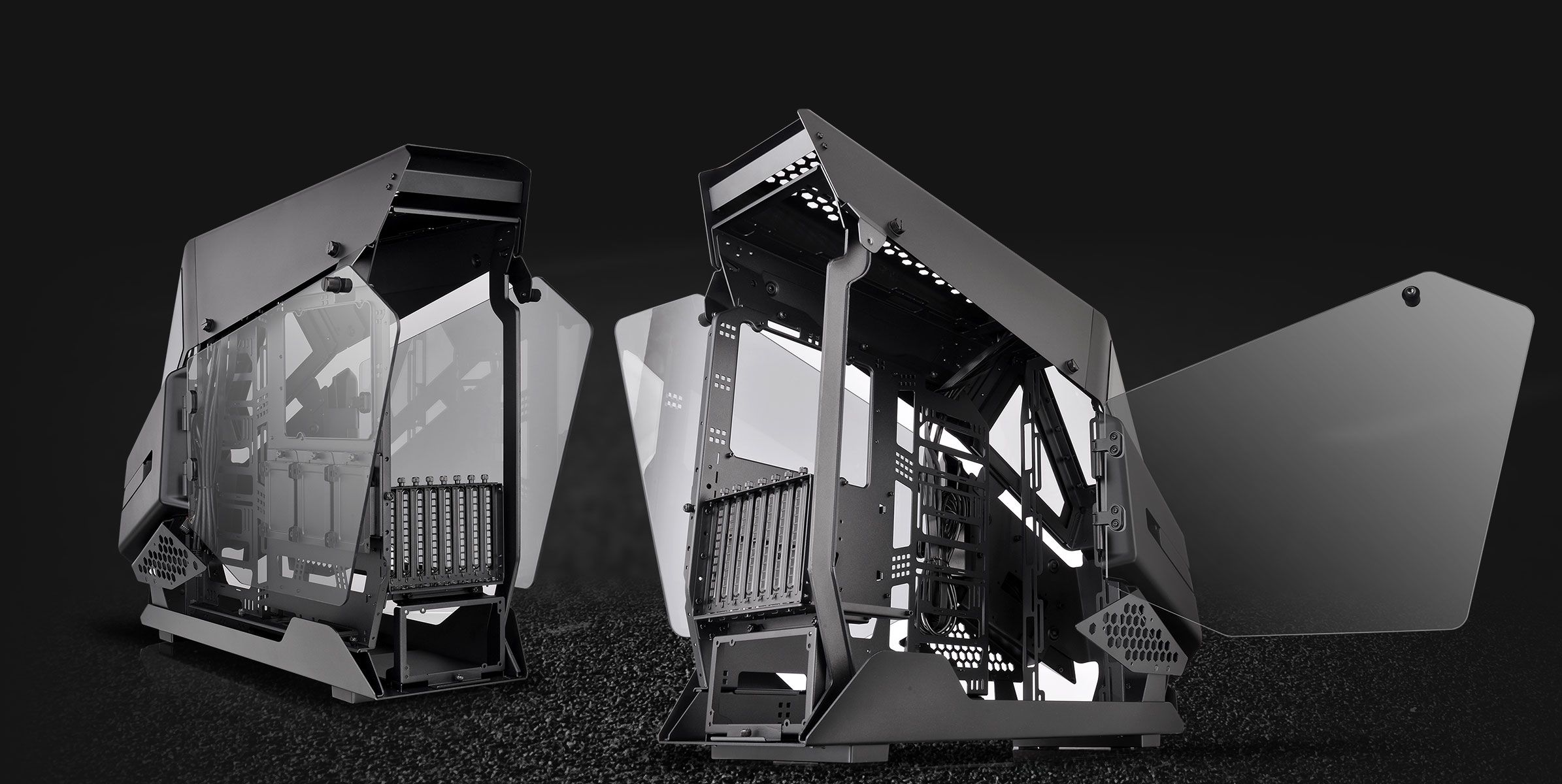 Корпус оснащений двома панелями із загартованого скла товщиною 5 мм, більш товстого та стійкого до подряпин, ніж стандартне акрилове скло. Розпашні дверцята зліва і справа забезпечують користувачам легкий доступ до внутрішніх компонентів, а також можливість повністю зняти дверцята для отримання повного доступу до внутрішніх компонентів. Крім того, збільшена конструкція вікон дозволяє демонструвати всі компоненти та милуватися ними у повній красі RGB.