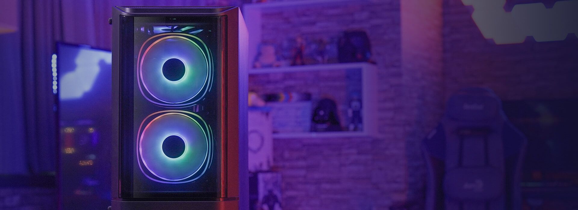 Цей корпус з акриловою передньою панеллю забезпечує чіткий огляд передніх світлодіодних вентиляторів. Металеве покриття зоряно-сірого кольору надає корпусу ексклюзивного та футуристичного вигляду.