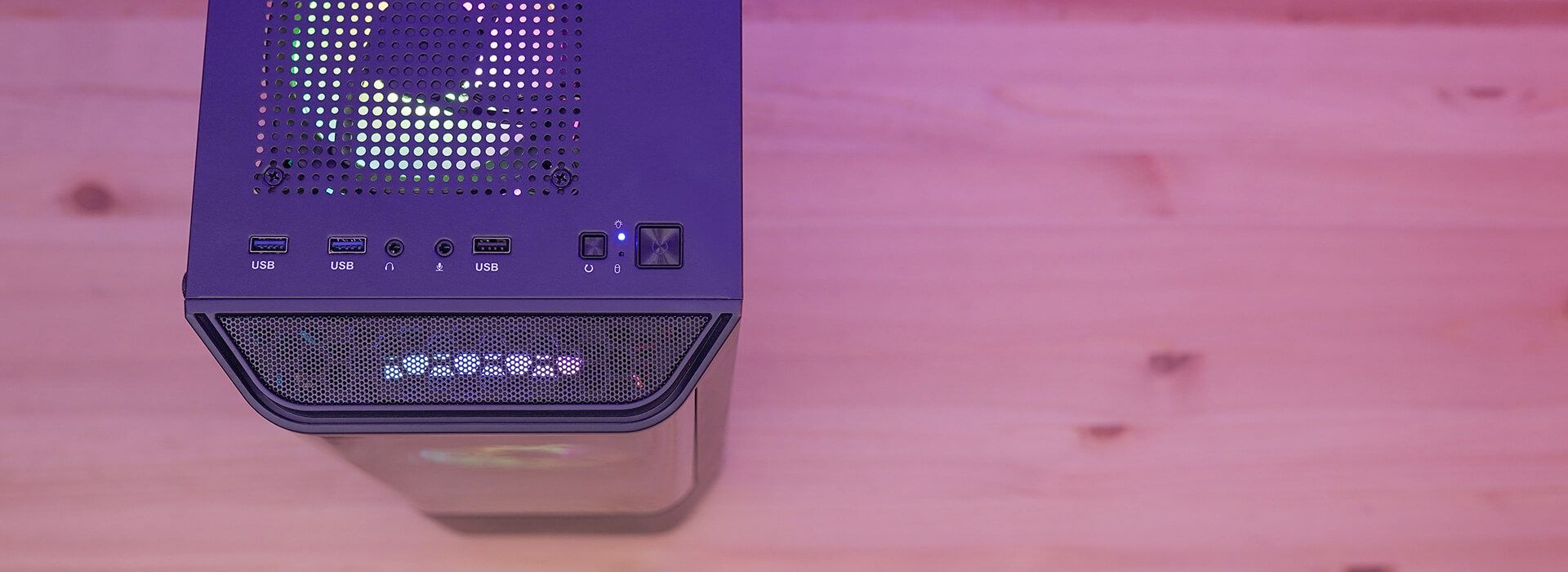 Швидкий і легкий доступ до 1 x USB 2.0, 2 x USB 3.0, портів HD-аудіо та мікрофона, а також кнопки живлення.