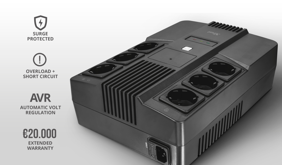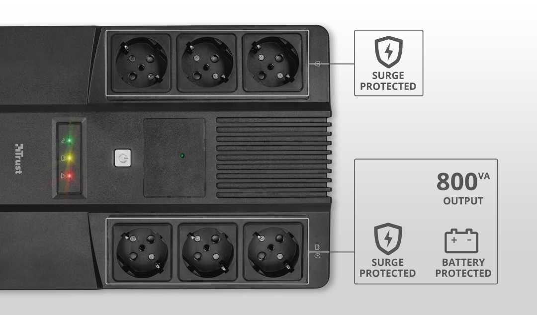 ДБЖ безперервної дії (Online) Trust Maxxon 800VA UPS with 6 standard wall power outlets BLACK 23326