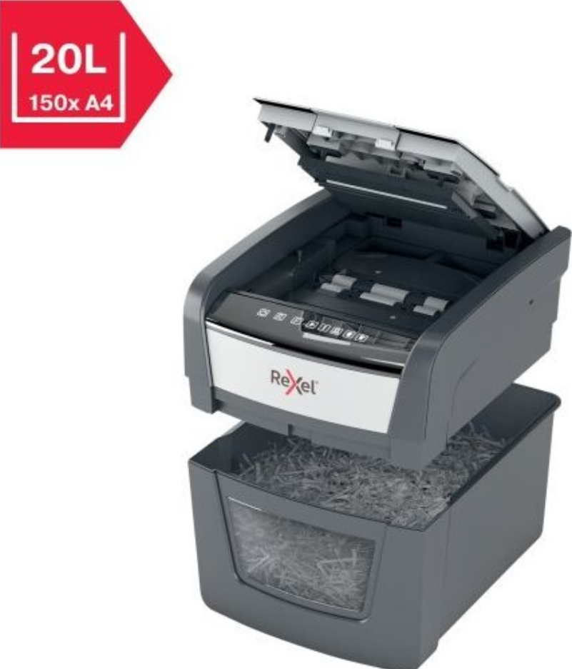 Автоматичний знищувач паперу Optimum AutoFeed 45X автоматично знищує до 45 аркушів формату А4 (80 г / мкм) за раз, розрізаючи аркуші на конфетті (4 x 28 мм) з рівнем захисту P-4. Він оснащений автоматичним подавачем і компактним 20-літровим контейнером для обрізків, що робить його ідеальним для використання вдома або в офісі. Не потрібно подавати папір вручну або попередньо видаляти скоби та скріпки - цей автоматичний шредер зробить усю роботу за вас.