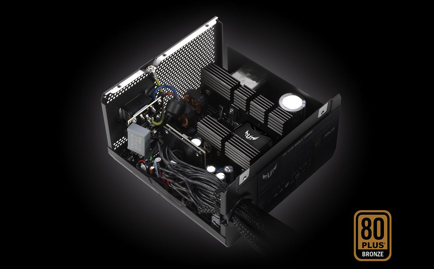 Високоякісні компоненти, що використовуються в блоках живлення TUF Gaming, забезпечують ефективну та надійну роботу, гідну сертифікації 80 PLUS Bronze. Ефективність також призводить до низьких температур у блоці живлення, чому сприяє ще тихіший акустичний профіль 135-мм вентилятора Axial-tech.