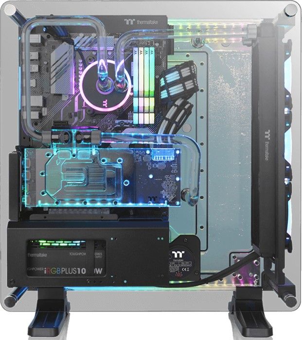 Корпус DistroCase™ 350P Mid Tower Chassis - це повністю модульний корпус з розподільчою платою в якості основного корпусу, виготовлений з SPCC та PMMA. Цей багатофункціональний корпус для ПК має власні водяні канали, резервуар (приблизно 800 мл охолоджувальної рідини), попередньо встановлений насос D5 і кілька входів і виходів. 48 світлодіодів у корпусі DistroCase™ 350P Mid Tower сумісні з TT RGB PLUS і програмним забезпеченням для редагування світла NeonMaker. Крім того, користувачі можуть керувати підсвічуванням, синхронізуючи корпус з материнськими платами, включаючи ASUS Aura Sync, GIGABYTE RGB Fusion, MSI Mystic Light Sync і ASRock Polychrome. Корпус DistroCase™ 350P Mid Tower надає користувачам, геймерам та ентузіастам простий спосіб спроектувати водяний контур для забезпечення максимальної зручності роботи.