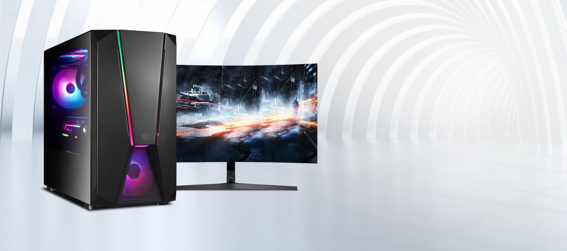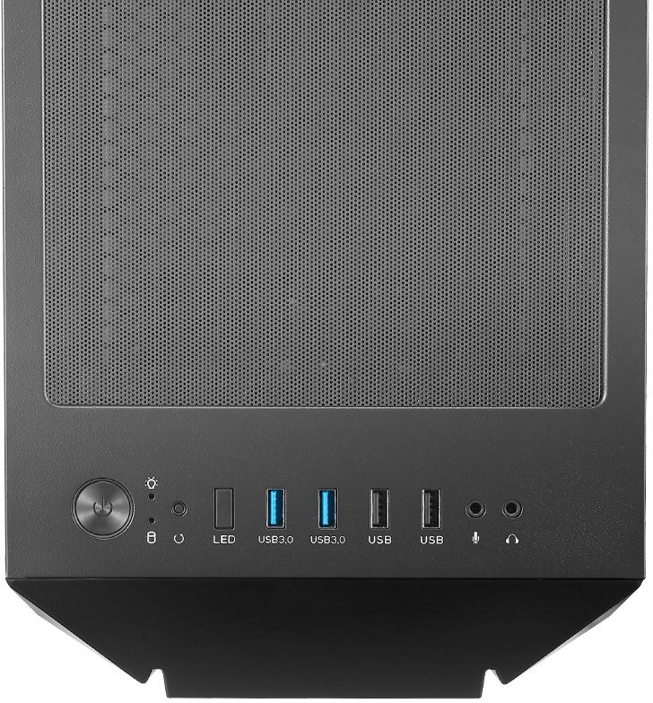 Агресивний дизайн передньої панелі з підсвічуванням ARGB, доповнений одним попередньо встановленим 120-мм вентилятором ARGB за сталевою сіткою для справжнього ігрового духу корпусу.