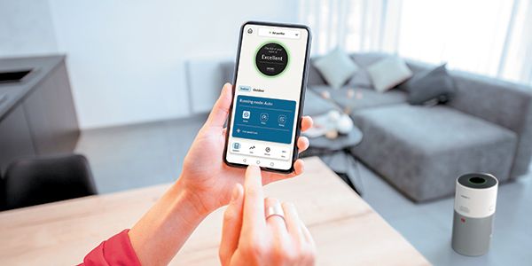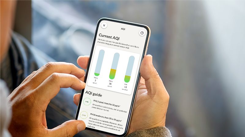 Інтелектуальні датчики безперервно контролюють якість повітря в приміщенні на вміст твердих частинок (PM10 і PM2.5) і летких органічних сполук (від дезодорантів, миючих засобів, клеїв, клеїв і косметики, серед іншого).