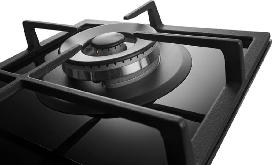 Завдяки скляній поверхні догляд за варильною поверхнею дуже швидкий і простий. Просто зніміть чавунну решітку та протріть поверхню м'якою губкою, змоченою в теплій воді. За необхідності, ручки управління можна легко зняти і очистити простір під ними. Обидві конфорки обладнані пристроєм безпеки, який автоматично перекриває подачу газу до певної конфорки, якщо полум'я випадково згасає. Якщо конфорка не запалюється, термозапобіжник не нагрівається і автоматично перекриває подачу газу на варильну поверхню протягом 3 секунд, навіть якщо кран відпустити.