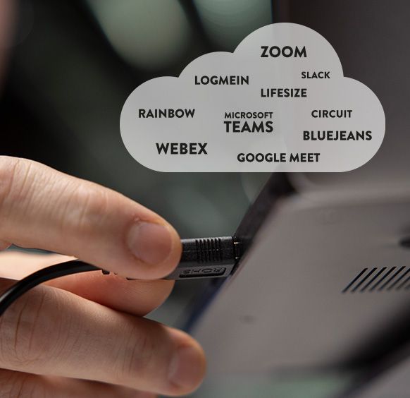 Незалежно від того, якому додатку або хмарному сервісу ви віддаєте перевагу, камера Konftel Cam10 задовольнить ваші потреби у спільній роботі. Просто підключіть USB-кабель до ноутбука або комп'ютера - і ви готові до роботи. Якщо ваша програма для спільної роботи підтримує керування камерою (стандарт UVC), просто відрегулюйте цифровий зум, щоб отримати ідеальне зображення.