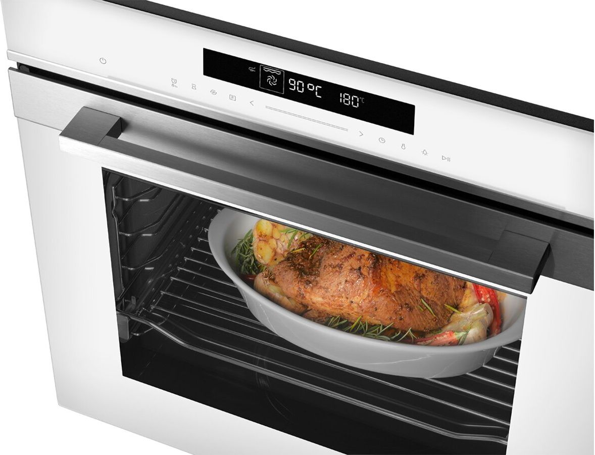 ETV8560WH пропонує 14 функцій приготування, включаючи гаряче повітря. Перевага випікання гарячим повітрям полягає в тому, що вам не потрібно попередньо розігрівати духовку, ви можете випікати на двох деках одночасно, а завдяки ідеально відточеним отворам всередині духовки ваша їжа буде рівномірно приготована. Вона також має гриль, програму ECO для енергоефективного випікання, програму розморожування та програму для випікання піци.